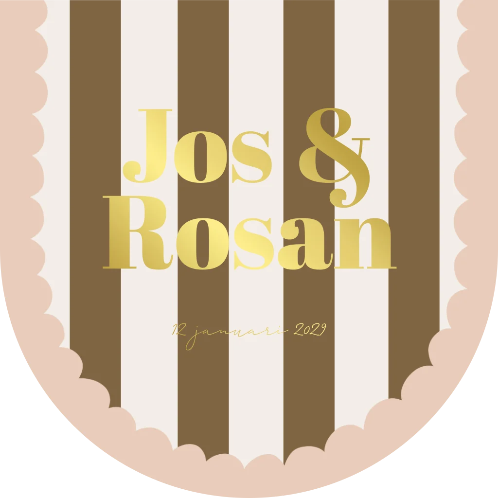De bruine strepen, roze rand en naam in goudfolie kun je allemaal aanpassen naar wens.