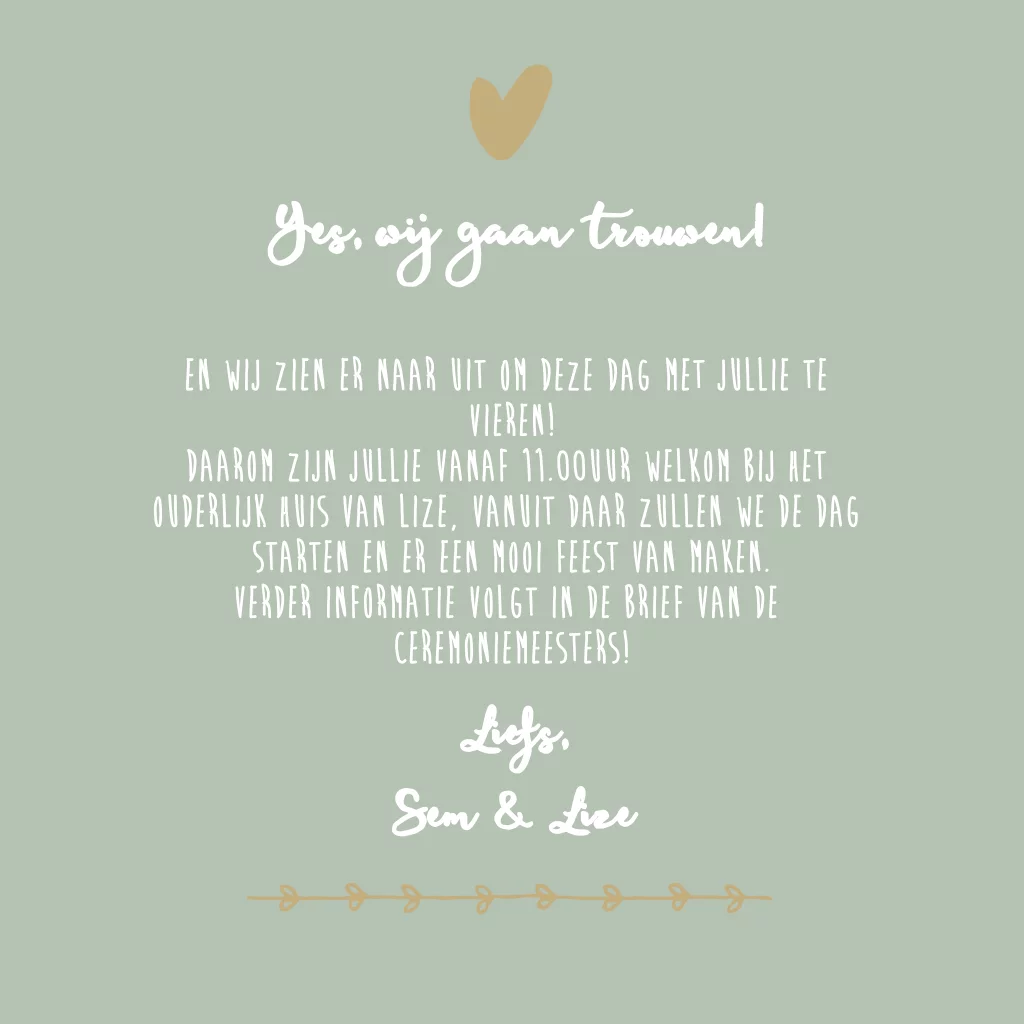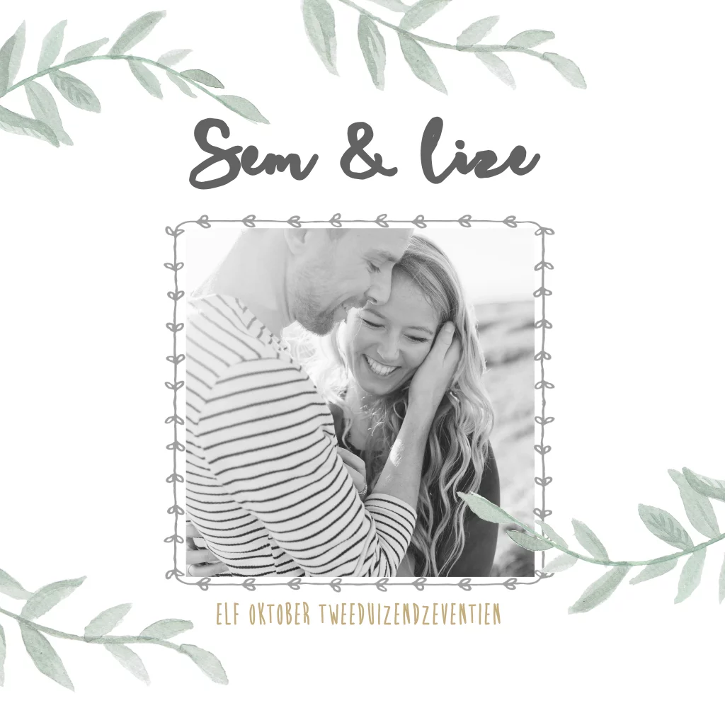 Pas deze trouwkaart helemaal aan naar wens. En maak jullie trouwhuisstijl helemaal zoals dit kaartje. Fotografie: Vier de Liefde