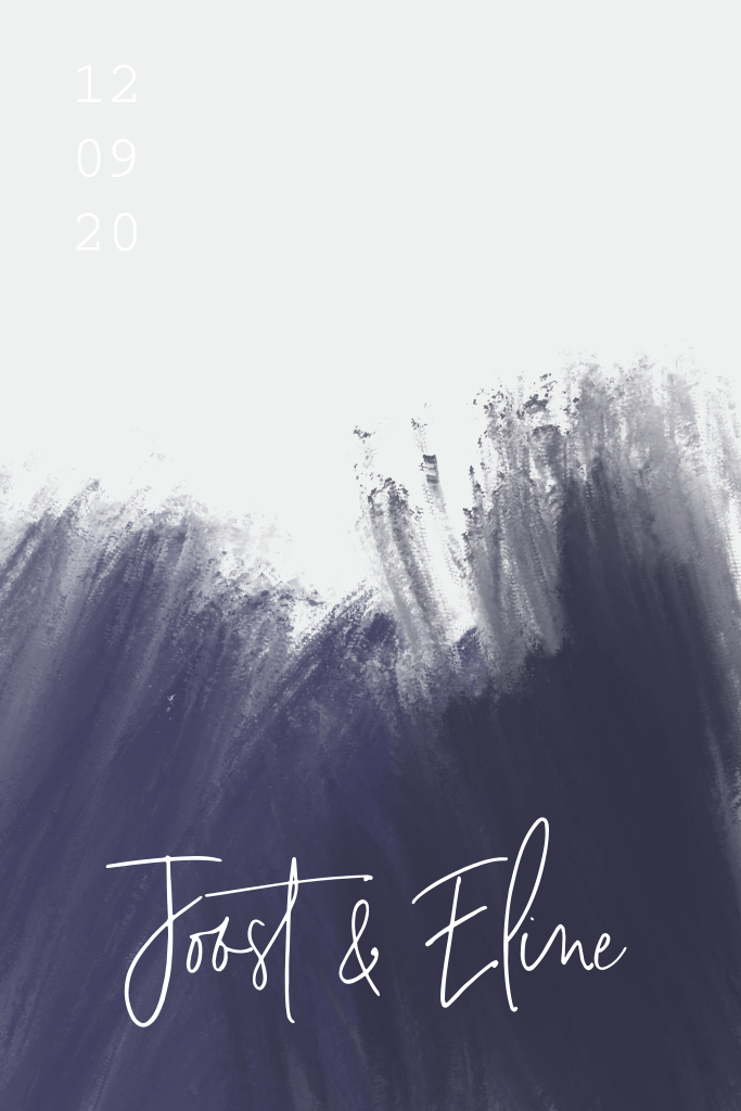 Trouwkaart met donkerblauwe verfstrepen en goudfolie
