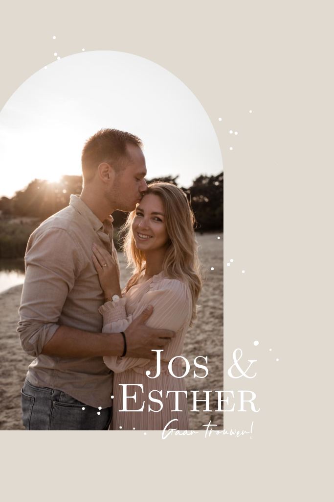 Deze trouwkaart met foto in een kerkraam krijgt een extra chique uitstraling door de goudfolie. Je kunt de kleuren helemaal naar wens. En de mooie foto van @annevg_fotografie vervangen door een foto van jullie zelf.