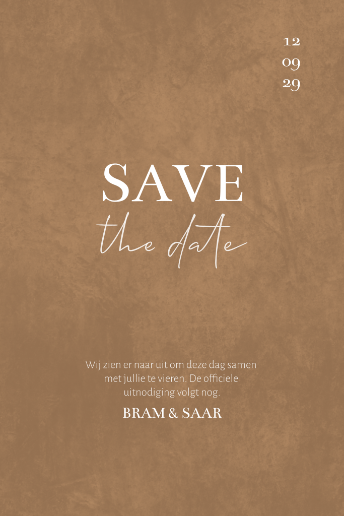 Deze Save the date kaart met velvet look komt het mooiste uit op Linnen papier door de structuur of Soft touch omdat dit heel zacht papier is.
