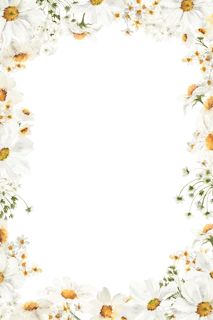 Deze trouwkaart heeft een rand van witte madeliefjes. En tekst in goudfolie.