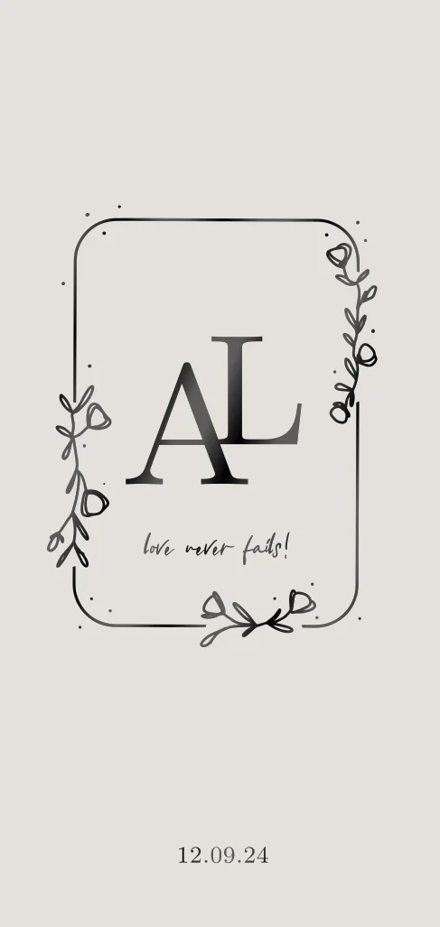 Trouwkaart met initialen bloemenkrans en lak foliedruk