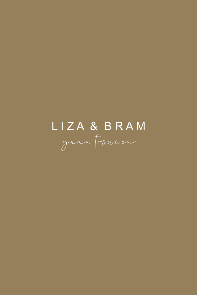 Een minimalistische trouwkaart in groen bruine kleur en stoere letters in goud foliedruk. Alles in deze trouwkaart kun je zelf aanpassen naar wens.
