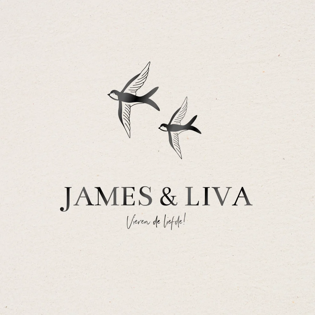 Deze trouwkaart heeft een kraft achtegrond die erg mooi uitkomt op Linnen papier. De zwaluwen staan op het kaartje in zwarte lakfolie. Maar die kun je natuurlijk allemaal aanpassen naar wens.