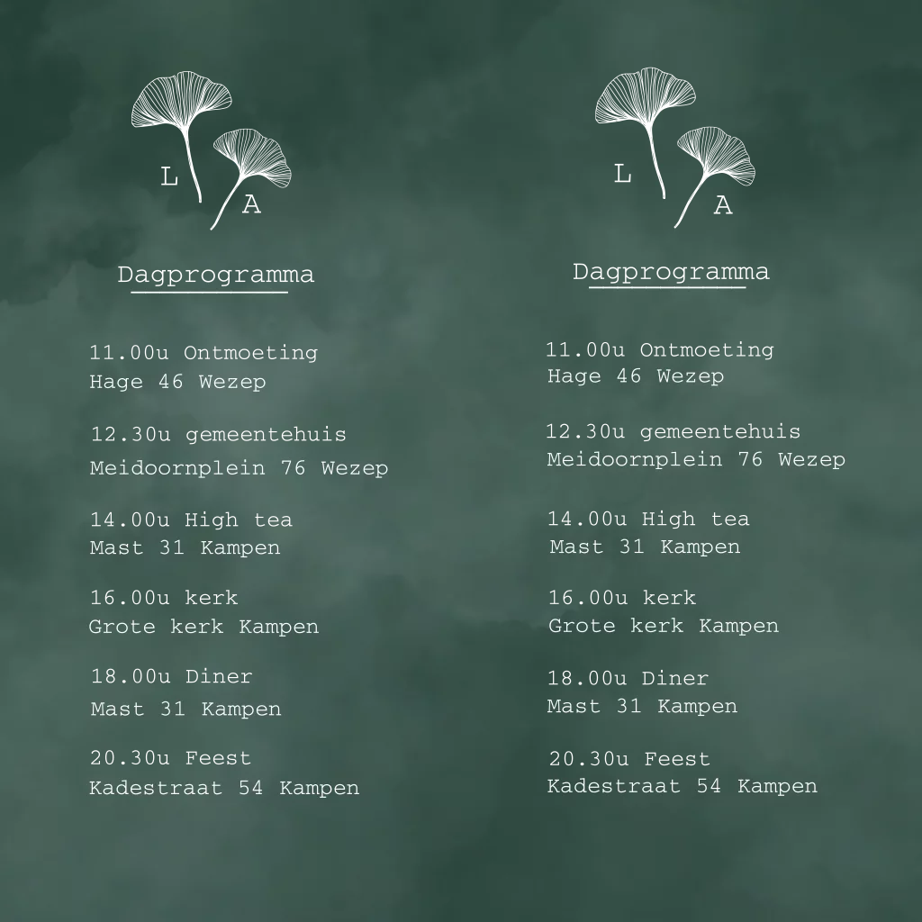 Met dit dagprogramma weten de daggasten precies wat ze gaan doen. Deze past precies bij de huisstijl van de trouwkaart.