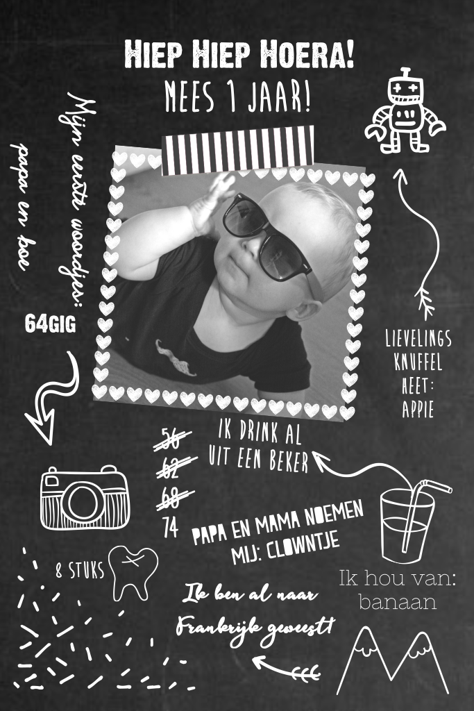 Dit kaartje pas je helemaal aan naar wens. Je kunt attributen en doodles uit onze editor gebruiken maar kunt ook zelf plaatjes toevoegen.
