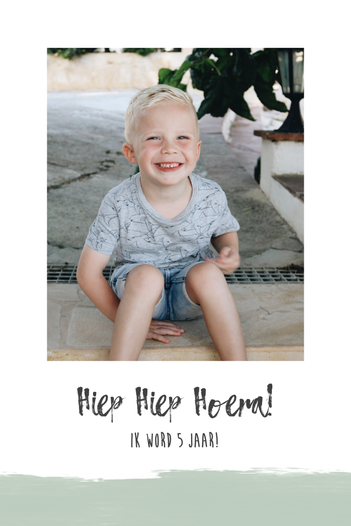 Verjaardagsuitnodiging met polaroid foto en groen rand