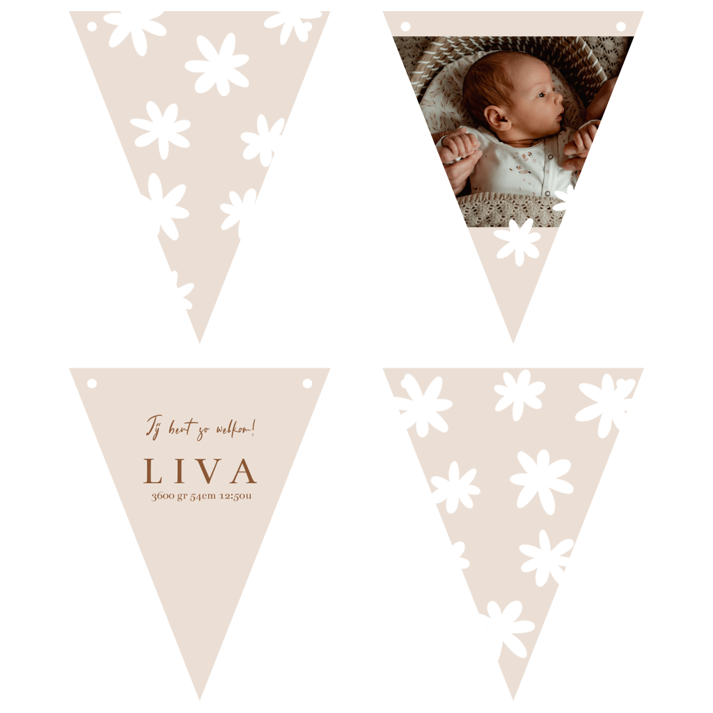 vlaggenlijn geboortekaartje meisje met foto en madeliefjes
