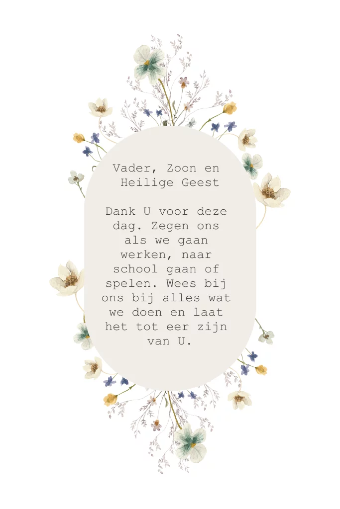 Dit gebed is mooi om elke dag samen als gezin te bidden voordat jullie de deur uitgaan. Je kunt het gebed aanpassen zoals je wilt en dan bestellen.