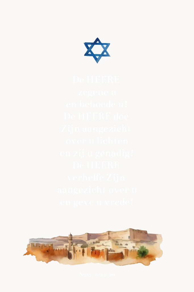Dit is een prachtig gebed om elke dag te bidden voor Israel. Numeri 6:24-26 Je kunt de tekst en de lay out helemaal aanpassen naar wens.
